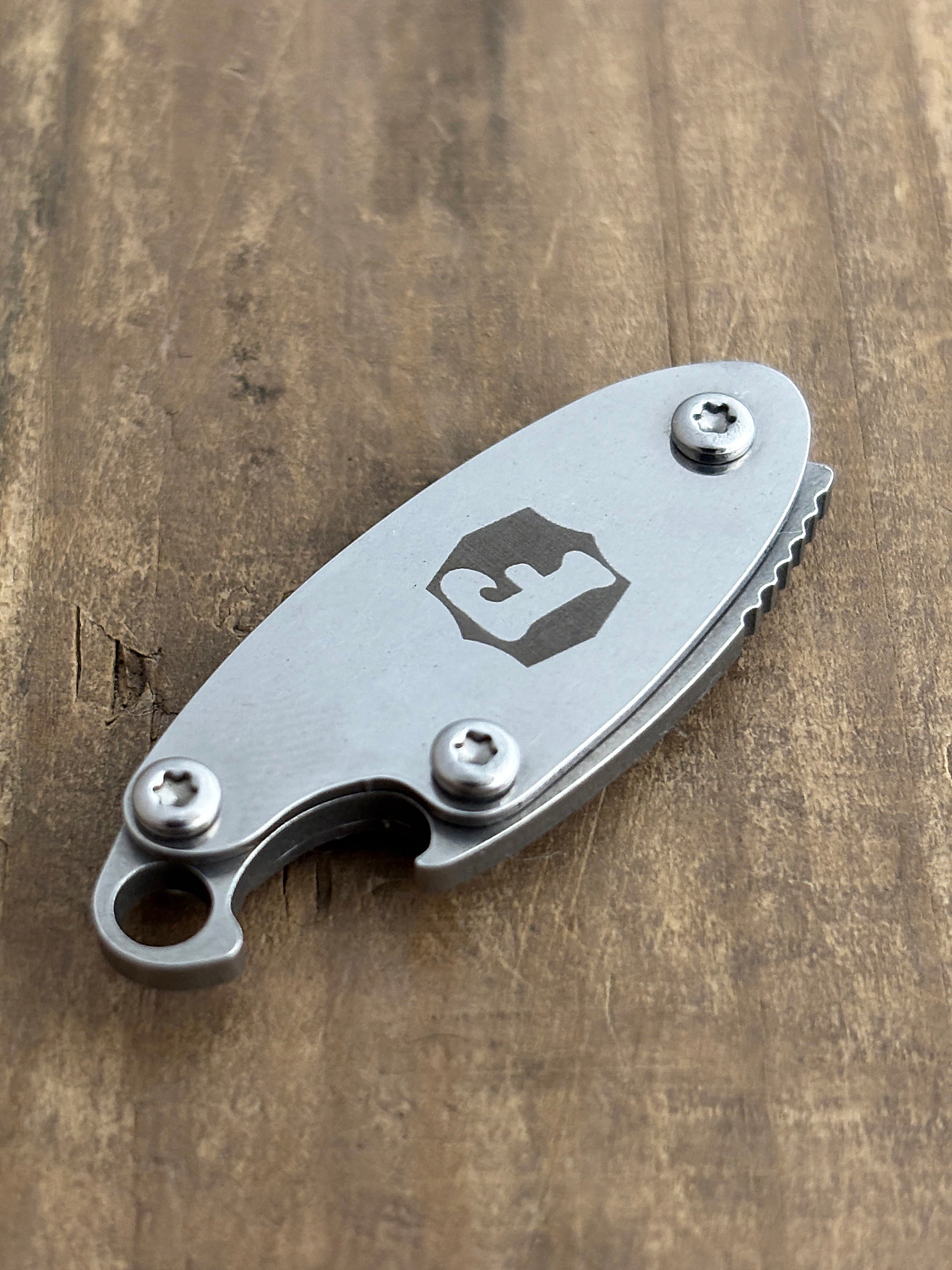 全長4.2cm(フォールディング時)×重量約12gと、とりあえず刃物として使える最小サイズを狙った「二型」ですが、本体のオーバル形状にはドロップポイントブレードが最も効率よく収納できるというこだわりあり。ブレード長2.5cmいっぱいの有効エッジで確かな実用性を確保しています。鋼材は7crステンレスを採用。