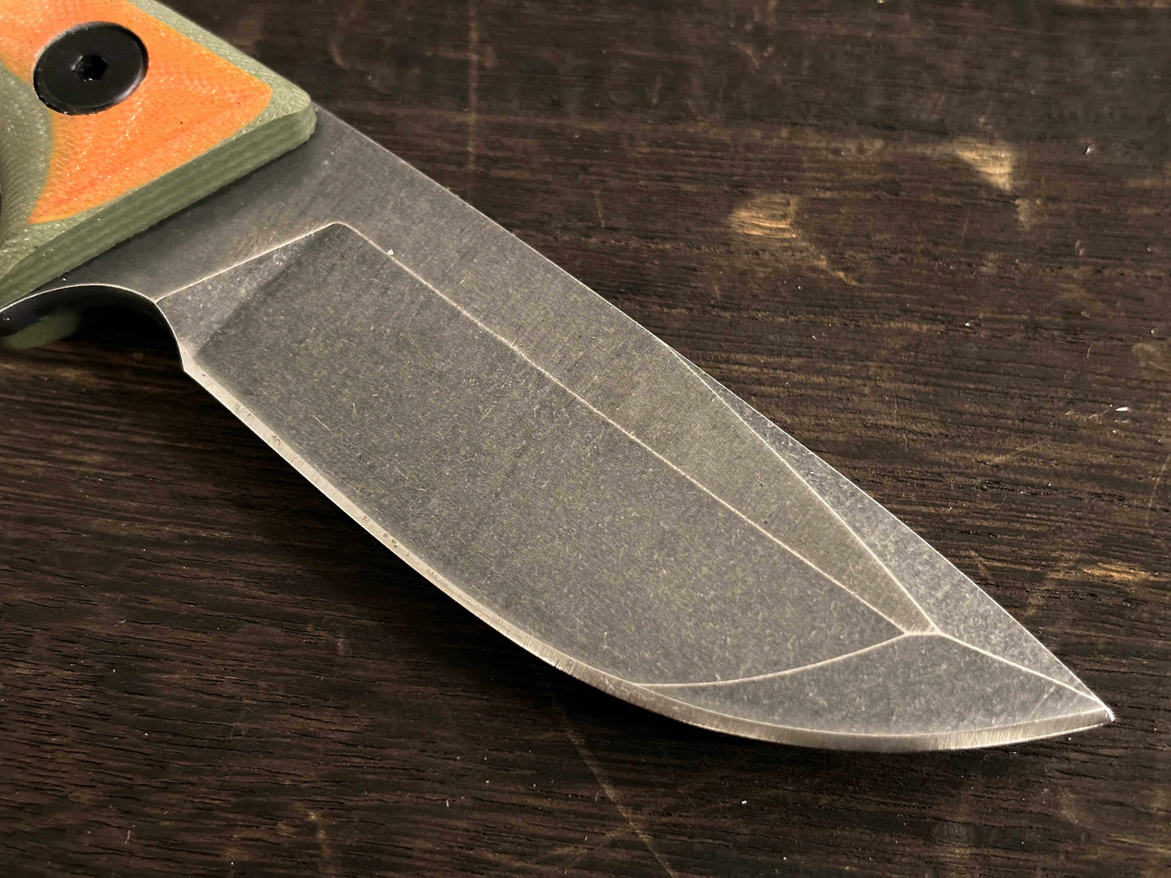 抜群の強度を誇る分厚いブレードをさらに活かすべく、プライマリーベベル(ブレードの傾斜)を厚くとってバトニング時の薪割り能力を強化。一方、ポイント(ブレードの先端)付近には新たなベベルを設けることでブレードが厚くなりすぎることを防ぎ、切削対象へ鋭角にアプローチできる仕様となっています。鋼材はステンレススチールの定番「AUS-8」の性能をハイコストパフォーマンスで踏襲した「8Cr13Mov」を採用。高強度なフルタング構造(ハンドルエンドまでブレード鋼材が通るナイフ構造)で末長く愛用可能です。