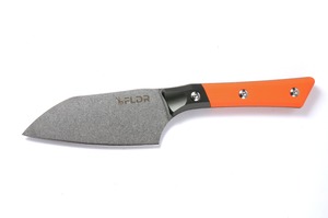 日本人に馴染み深い“包丁スタイル”を取り入れながらも、鋼材に「D2(2.2mm厚)」、ハンドルに「G10(一部アルミを使用)」というフィールドナイフの定番コンビを採用してタフ性能を上げた、その名も「サバイバルペティ」。野営地でのワイルドな調理はもちろんのこと、その他作業もナイフのようにこなす万能性を備えている。